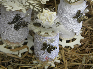 How cute are these little birdies......... mmmmmmmmmmm..... nice! Embossed OTC Chippy Branch with a tiny bead cap filled with muslin and pearl beads...............